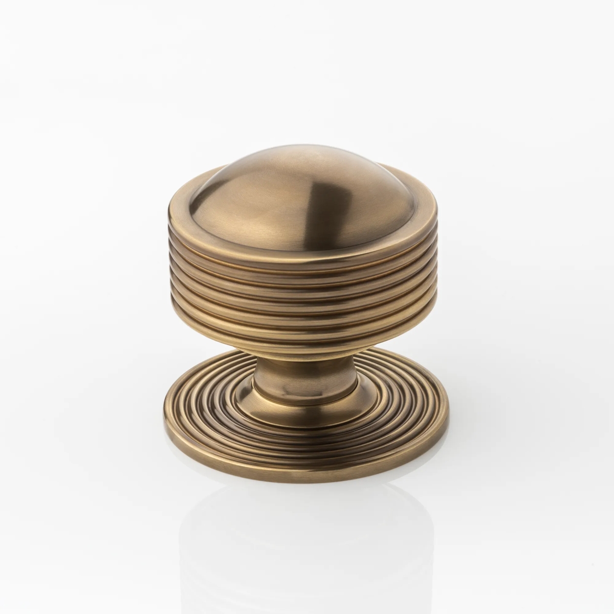 The Hurleigh Collection takes its inspiration from a period wooden door knob, defined by its smooth domed top and distinctive ringed sides. This familiar, tactile form has been carefully reinterpreted in solid brass, preserving the warmth and character of the original design while elevating it through refined craftsmanship.