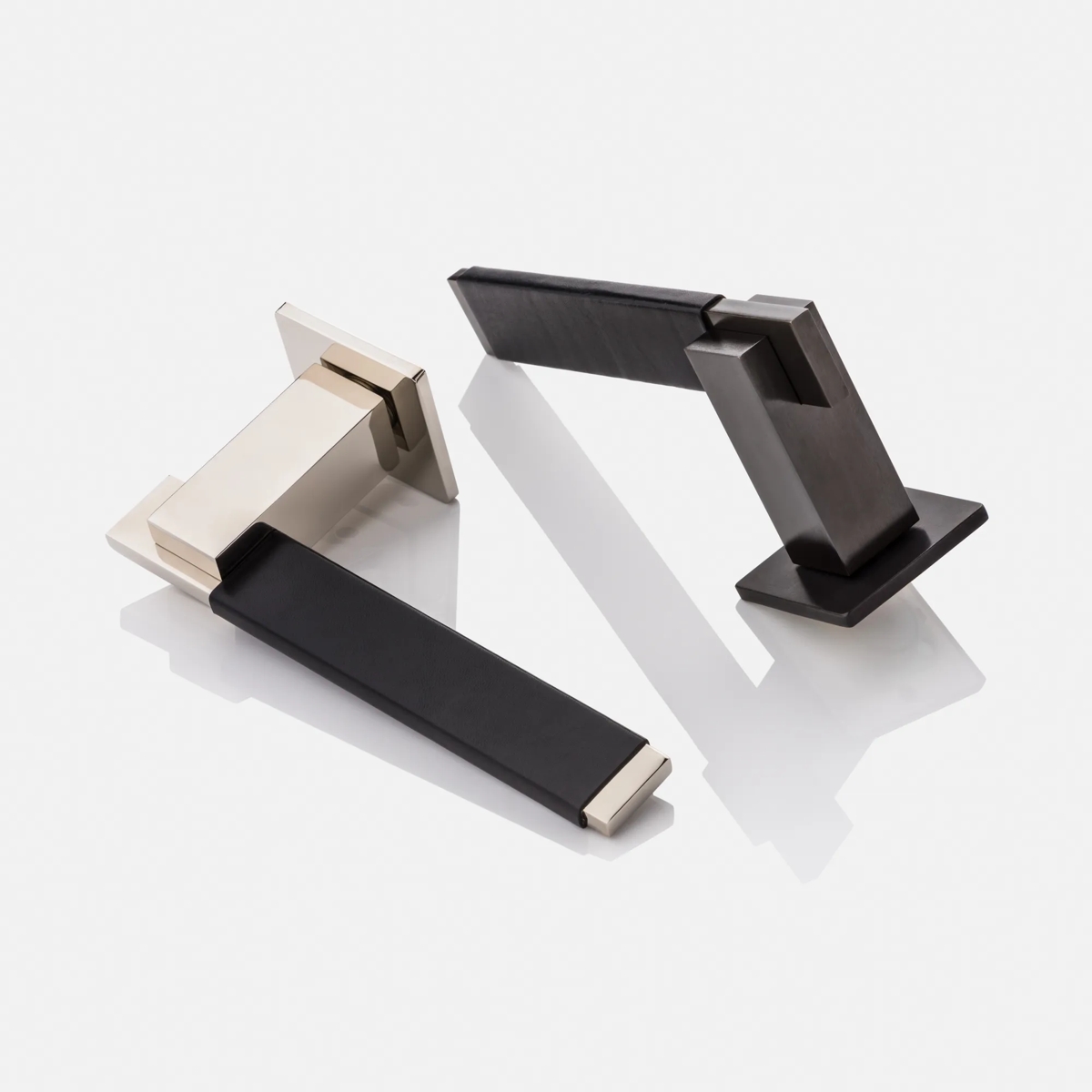 Our Holmes lever handle was selected, wrapped in a beautiful dark brown bridle leather.