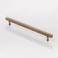 Handmade solid brass cabinet handle with a fly press textured surface. These are available in a range of sizes and a selection of finishes.