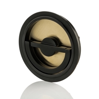 This solid brass recessed pull is often installed on hinged jib doors or in situations where a hinged door is required to fold flat against a wall. Your selected primary finish will be applied to the edge and grip of the pull, with the secondary finish applied to the inlay.