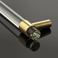 We took this vision and explored the possibilities to bring it to life: a challenging but rewarding task, as glass is a beautiful but delicate material to shape. The completed designs feature a transparent glass grip, which contrasts dramatically with the brass stem to provide a jewel-like finishing touch for the ultimate in luxury design schemes.