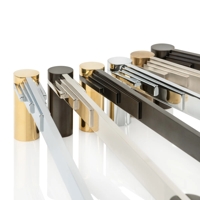 The standard bolt-through fixings for glass doors will suit doors up to 10-12mm thick and will come with two cover caps.