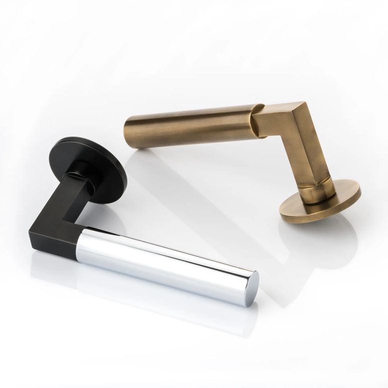 Your selected primary finish will be applied to the rose and square stem of the lever handle, with the secondary finish applied to the cylindrical grip.
