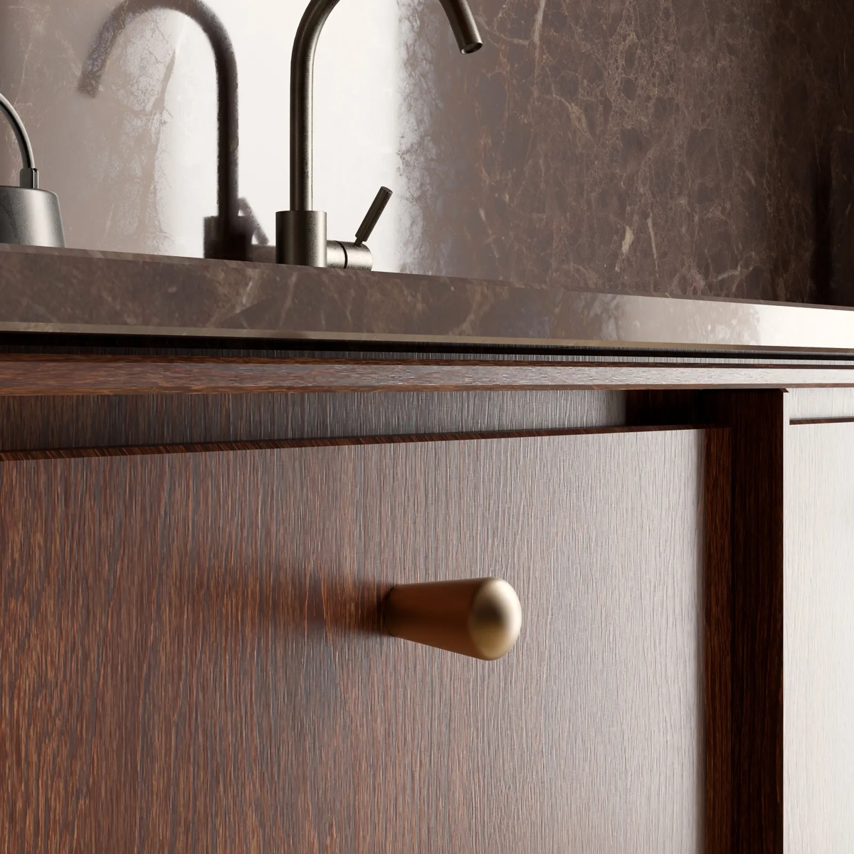 Beginning as a quest for a lever handle that can be comfortably approached from the end (consider when you're approaching a door from the side rather than front on), a visit to the Victoria & Albert Museum in Kensington found us drawn to the ancient pestle & mortar - ergonomic in its very purpose - forming a shorter lever with a comfortably bulbous end.