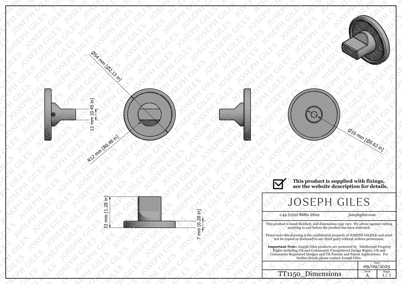 Our thumb turns are made from finest grade solid brass and are hand-finished in all the standard Joseph Giles finishes.