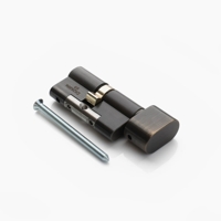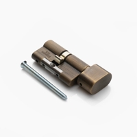 Solid brass euro profile cylinder with five internal pins: each cylinder is pinned, built, and finished by hand. Operated by a key on one side and a thumb turn on the other side.