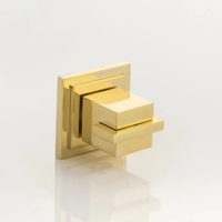 Inspired by minimalist architecture, we were interested in experimenting with the way in which square and rectangular shapes coalesce and complement each other, hence the Holmes was born. In this instance, we have paired the Holmes turn with a stepped square rose for a slightly more classic look.
